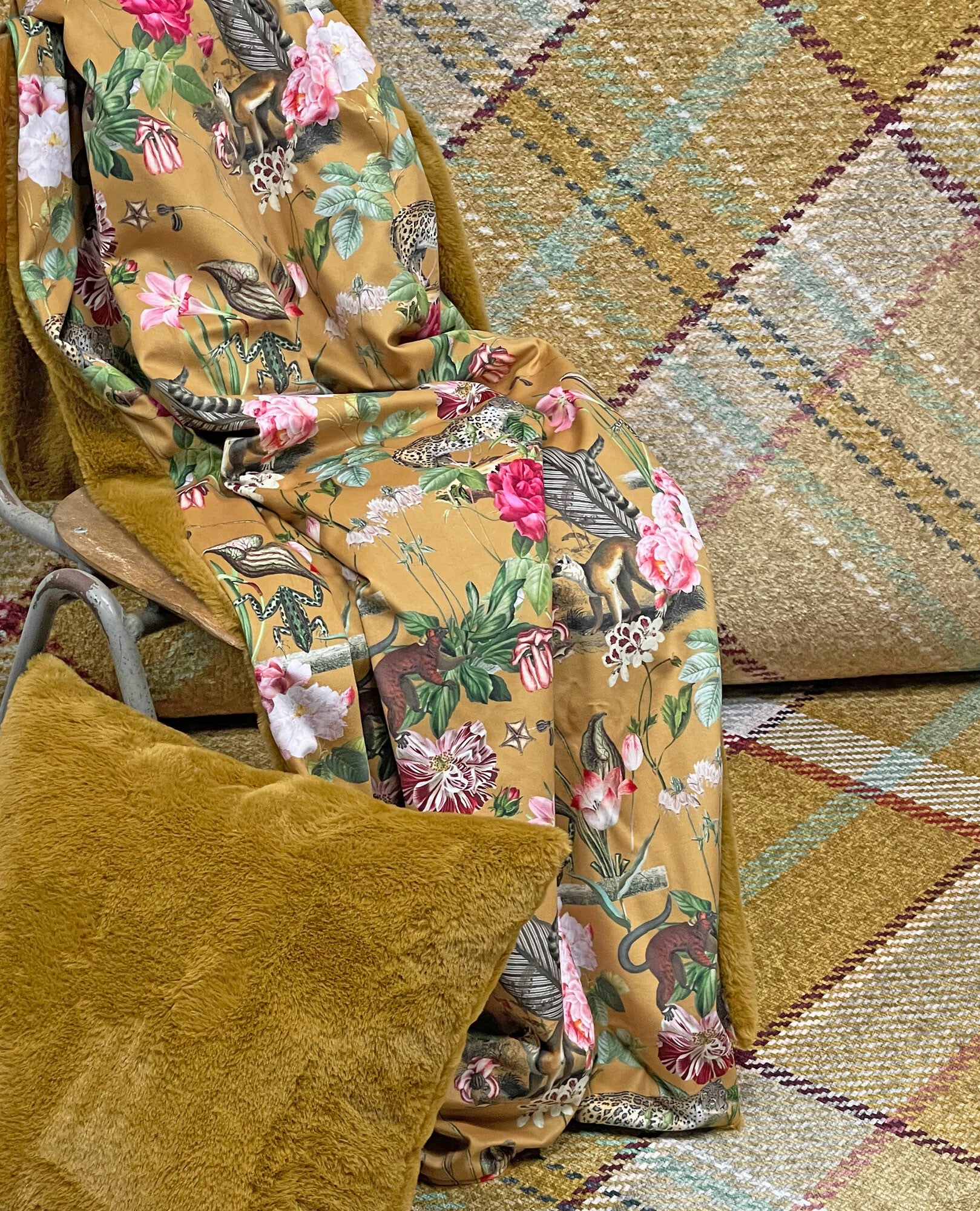 Van enkele themas is ook een fluwelen stof beschikbaar evenals mooie plaids en sierkussens.
